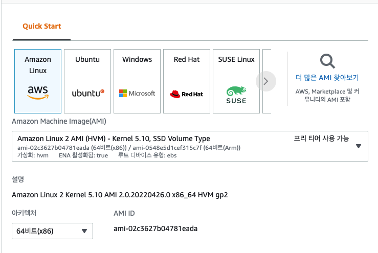 우선 서비스를 시작하고자 하는 리전에 인스턴스 시작을 눌러준다.